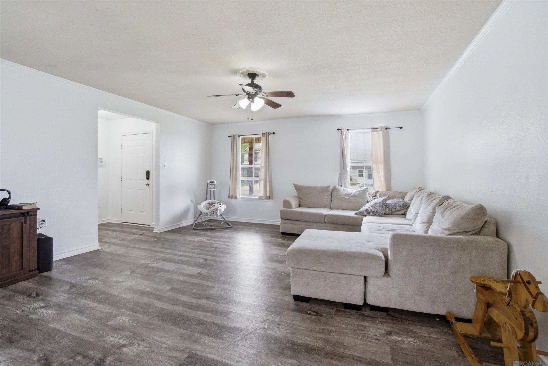 Beautifully updated home in a highly desirable, low-traffic location just minutes from I-12 and Range Avenue. An ideal setting that offers convenience. This well-maintained property did NOT flood in 2016 and no flood insurance is required. It features a spacious open floor plan designed for comfortable living and entertaining. Major upgrades throughout include a larger HVAC system (upstairs and downstairs), newer roof, new carpet, and premium vinyl flooring in non-tiled areas. The home also showcases granite countertops, updated kitchen and bathroom faucets, and modern lighting in all bathrooms, along with a freshly painted interior. Additional features include usable attic space, an attached 1-car garage, and ample 2"3 car parking. Step outside to a fenced-in backyard with a large, insulated shed with electricity, a wood privacy fence with 5' gate and pond access gate, and a covered patio perfect for relaxing or entertaining. The low-maintenance landscaping adds to the home's easy-living appeal. The kitchen and bathrooms have been thoughtfully updated, and the washer and dryer are negotiable. Move-in ready with modern upgrades, great outdoor space, and an unbeatable location.