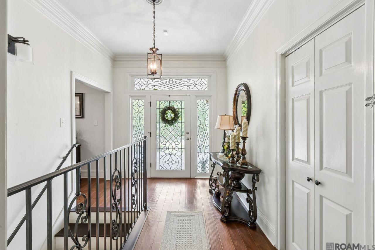 Nestled on 1.5 park-like acres, this estate offers a rare blend of architectural grandeur and serene natural beauty. As you approach via the crepe myrtle-lined driveway, the mature trees and lush landscaping create an immediate sense of privacy. The heart of the home is a magnificent large living room, anchored by a stately fireplace and framed by stunning architectural details. From here, step out onto the upstairs porch to enjoy elevated views of the sprawling grounds. For those who love to entertain, the floor plan flows seamlessly from the formal dining room to a spacious eat-in kitchen, perfect for morning coffee or family meals. This home is thoughtfully designed for multi-generational living or guest comfort, featuring two primary suites. The lower level adds a layer of sophisticated fun with a dedicated flex space complete with a wet bar, ideal for a media room, home gym, or executive lounge. The three car garage and large utility room add to the convenience of this home. On top of everything else this private retreat has to offer, it also stayed high and dry in 2016!